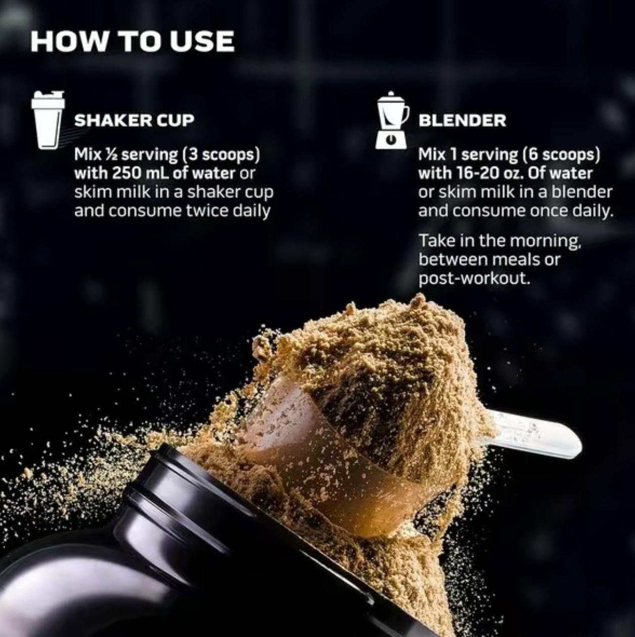 Mix 1 serving with 20–24 oz of water or milk in a shaker or blender.